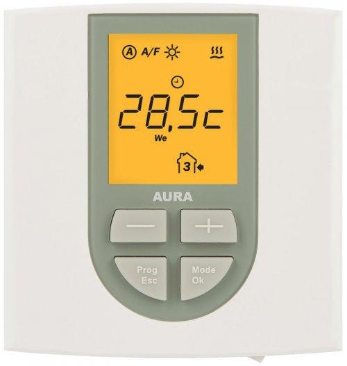 AURA VTC 770 – электронный терморегулятор с возможностью программирования c двумя датчиками температуры (один выносной на проводе и один встроенный в корпус регулятора). Терморегулятор AURA VTC 770 предназначен для управления любыми электрическими теплыми полами.