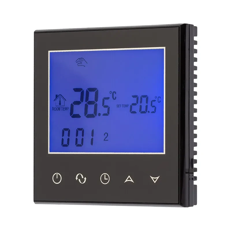 Терморегулятор оснащен ЖК дисплеем. Есть возможность задавать до 6 временных периодов на каждый день недели, а также выбрать ручной режим управления. С помощью специальных функций двойного контроля и двойной температуры, прибор получает данные не только о температуре в помещении, но и о температуре оборудования. Когда температура в системе выше, чем установленная, терморегулятор автоматически остановит нагрев. Такой режим обеспечивает разумное потребление ресурсов и продлевает срок службы системы отопления.
