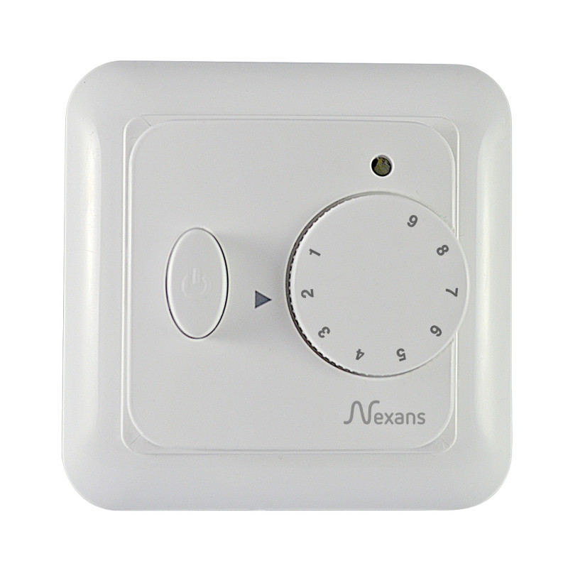Термостат обеспечивает минимальное и максимальное ограничение настройки в пределах диапазона рабочих температур. Для настройки используются DIP-переключатели и потенциометр, расположенные под лицевой панелью термостата. Управление осуществляется посредством двухполюсного двухпозиционного переключателя и ручки настройки температуры, расположенных на лицевой панели.